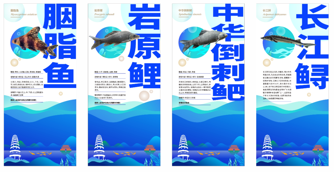 翠屏區(qū)人工增殖放流活動(dòng)現(xiàn)場(chǎng)展示的長(zhǎng)江鱘等珍稀魚(yú)類(lèi)科普?qǐng)D片。