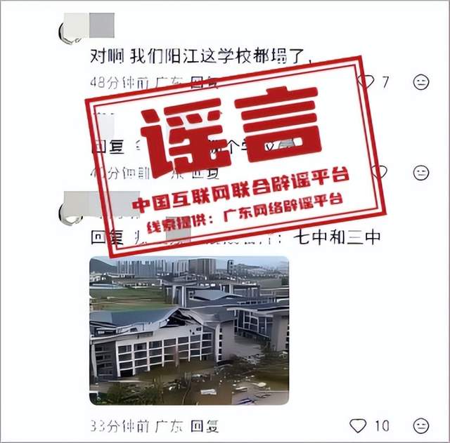 謠言:廣東陽江兩所中學(xué)教學(xué)樓因臺(tái)風(fēng)坍塌?