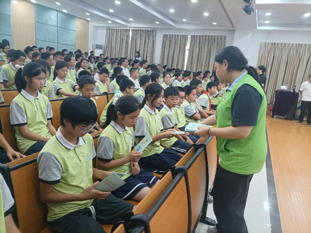 活動過程中,公安人員通過PPT形式為學(xué)生們講解交通安全知識,包括“交通法律法規(guī)”“違反交通規(guī)則的危害性”等,并播放了“鬼探頭”式交通事故警示教育片,讓學(xué)生們在上學(xué)、放學(xué)途中要保持警惕心和細(xì)心,明白到遵守交通規(guī)則的重要性。期間,禁毒社工派發(fā)禁毒宣傳單張向?qū)W生們普及禁毒知識,重點(diǎn)強(qiáng)調(diào)依托咪酯-上頭電子煙的危害性,教育引導(dǎo)學(xué)生們提高識毒、防毒、拒毒的意識和能力。